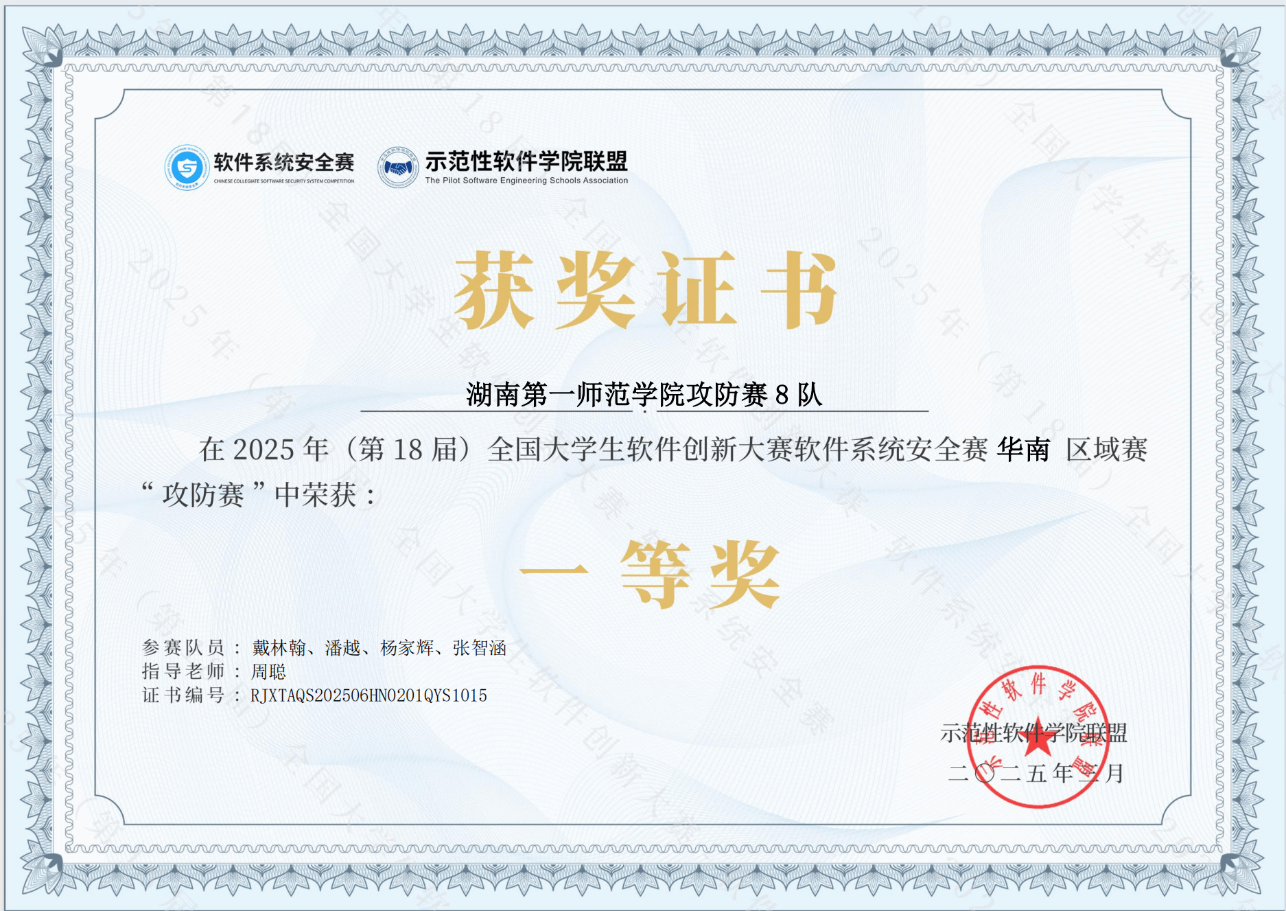 第18届全国大学生软件创新大赛软件系统安全赛全国总决赛于2025年5月18日在湖南大学圆满落幕。湖南高校共有18支团队获奖。其中我院的2支参赛团队荣获攻防赛三等奖,实现了网安竞赛团队在国家级赛事中获奖的突破。在区域赛阶段,太阳官网参赛团队表现出色,斩获一等奖2项、二等奖1项、三等奖3项,位居华南赛区前列。