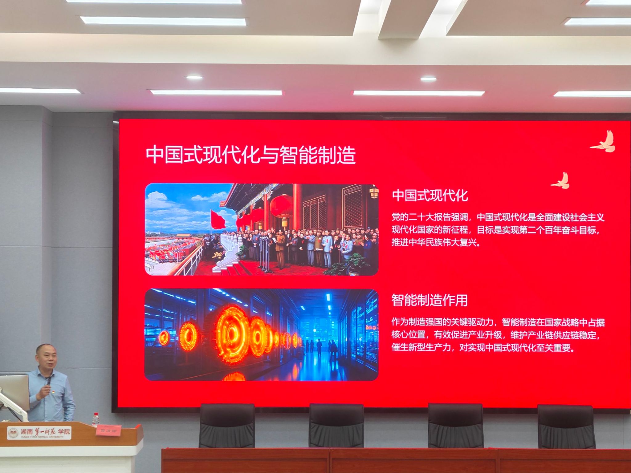 11月13日晚,智能制造学院院长曾进辉在润寰楼南105教室,为15vip太阳集团官网与智能制造学院入党积极分子讲授题为“以奋发有为的时代担当 助力实现中国式现代化”的专题党课。